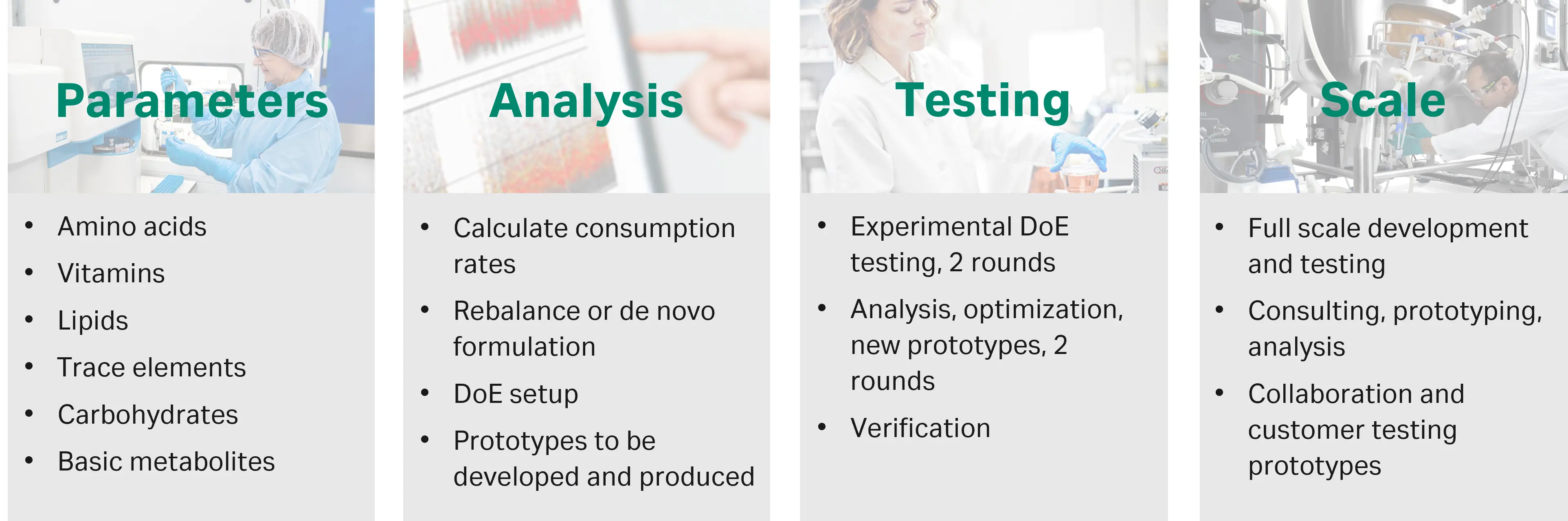 Successful media optimization can have a big effect on your cells’ performance. Depending on your original process and medium, you could see a two- to four-fold (or more!) increase in productivity.