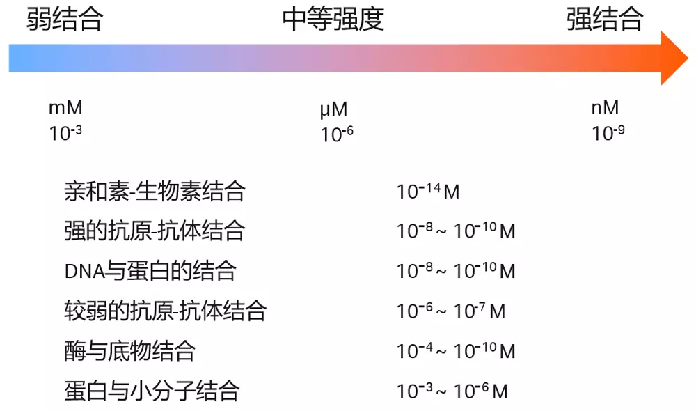- 常见生物分子间相互作用的亲和力如下范围