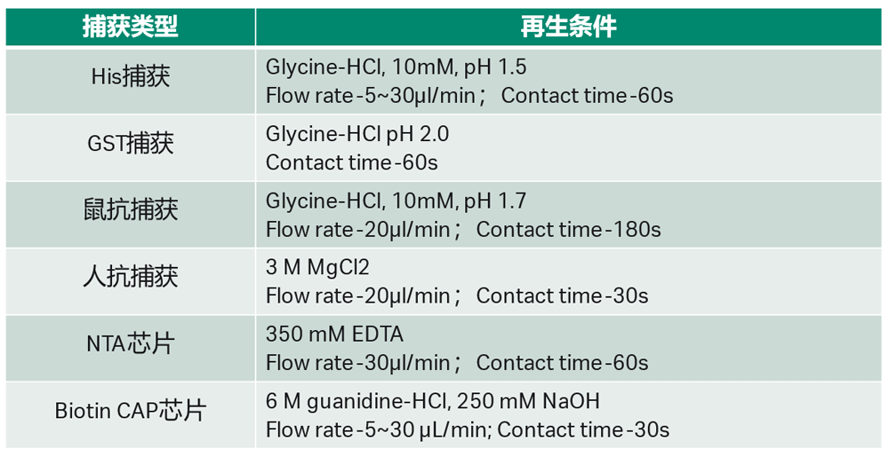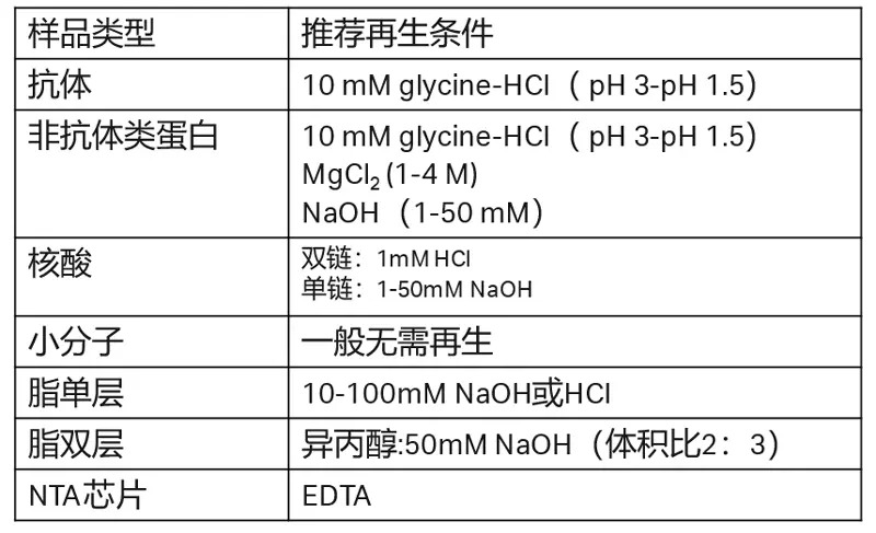 有某些小分子和蛋白的结合稳定性很强,此时就需要用再生试剂,可做Regeneration scouting进行选择。