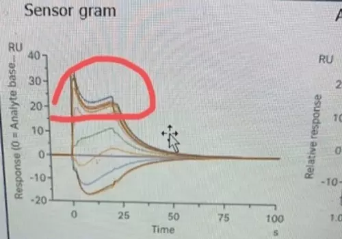 溶液切换时,折光差异变化较大,如图(小分子;CM7;PBS buffer)