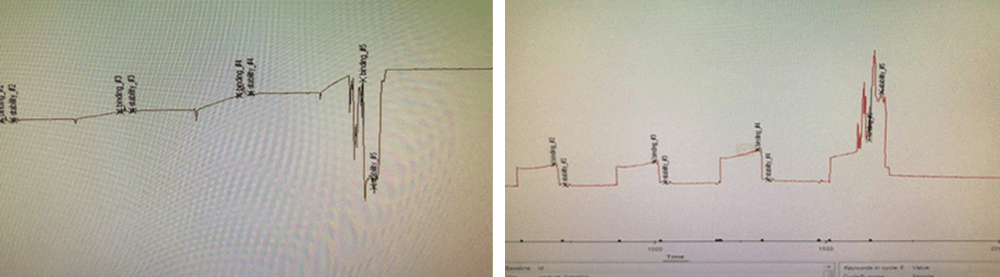 在做单循环动力学的时候,最后一个浓度出现了曲线波动,请问这是什么原因造成的?