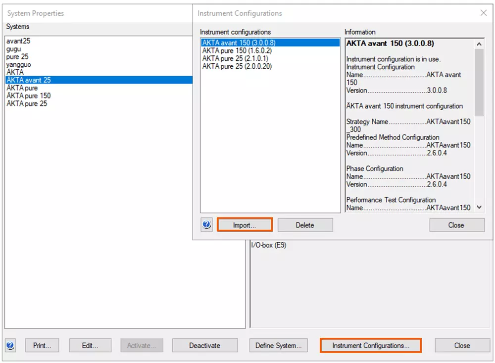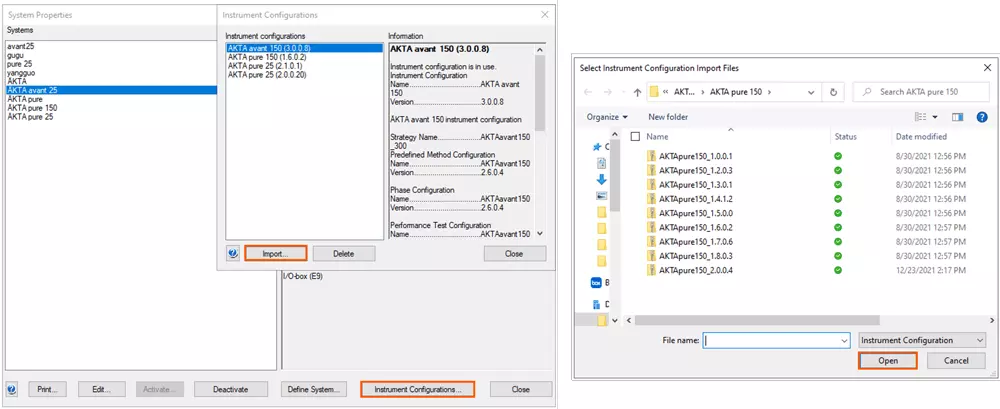 - 点击 Import 跳出浏览窗口,选中对应的 ÄKTA pure/avant 配置文件( 25 或 150 ),点击 Open