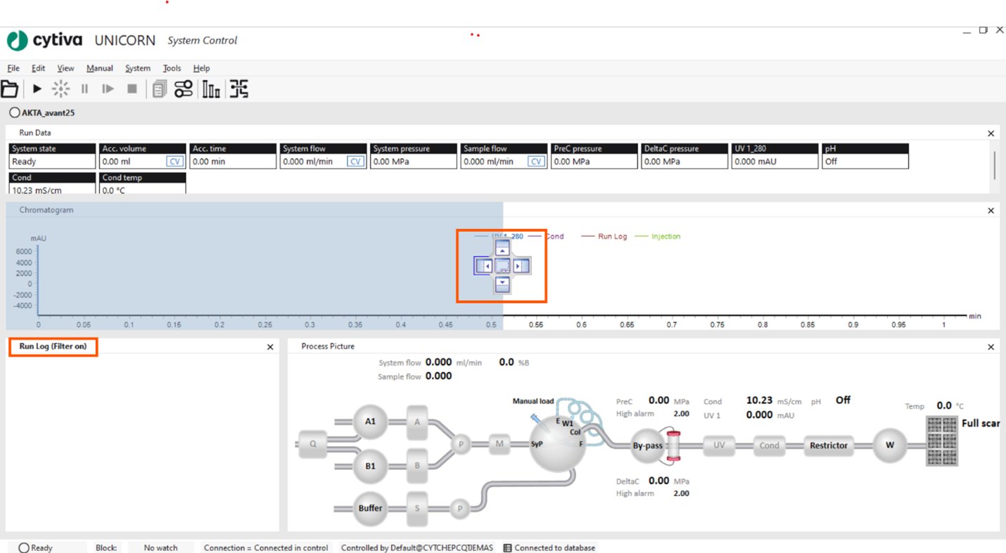 若 System Control 整个窗口为灰色状态,首先检查 UNICORN™ 软件和 ÄKTA™ 设备是否正常连接,若连接正常但 Run Data、Chromatogram、Process Picture、Run Log 没有显示,检查方法如下: