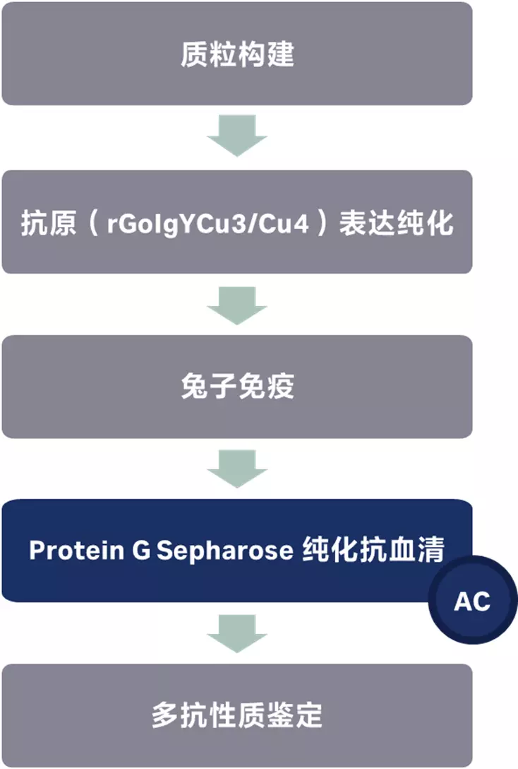 本研究中首先通过载体构建成功构建了表达GoIgYCu3/Cu4蛋白的质粒,并通过大肠杆菌E.coli进行重组表达。蛋白表达纯化后,利用纯化的蛋白对兔子进行免疫后采血,得到的抗血清使用Protein G Sepharose纯化并得到多抗,之后对多抗进行性质鉴定。