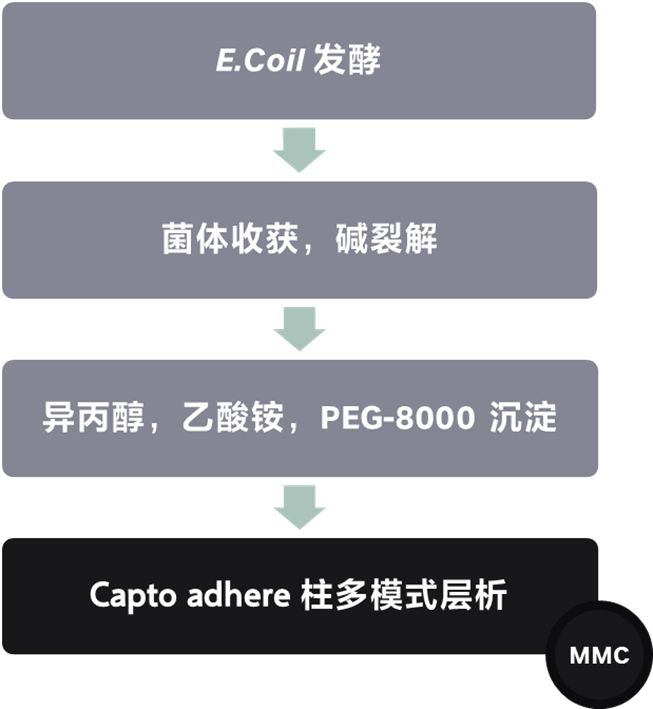 质粒在大肠杆菌中表达,样品预处理后经一步多模式填料纯化后产品纯度达到1.3±0.3 % µg gDNA/µg sc pDNA,最终计算一步层析质粒的收率83%,总的收率47%。通过一步多模式层析去除了大量的开环(oc)质粒DNA和RNA。