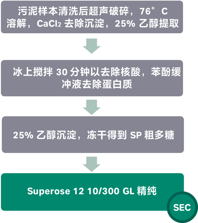 本研究共调查6个污泥样本,其中5个 (S1至S5)是从不同实验室规模反应堆收集的,1个 (S6)从当地盐水污水处理厂采集。S1-S6提取污泥样品,去除杂质后超纯水超声波破碎细胞,经过CaCl2溶液,乙醇,苯酚等处理后冻干获得SP粗提物。