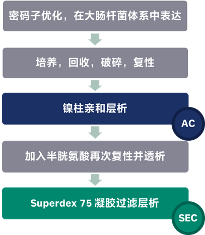 将鼠源的mRELMa和人类来源的hRETN基因进行密码子优化后,在大肠杆菌BL21体系中进行表达,使用ÄKTA层析系统进行纯化。